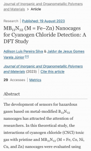 O artigo intitulado “Nanogaiolas MB11N12 (M = Fe-Zn) para detecção de cloreto de cianogênio: um estudo de DFT” é fruto do seu doutoramento em Química, que tem a orientação do Prof.Dr. Jaldyr de Jesus Gomes Varela Júnior, da Universidade Federal Do Maranhão.