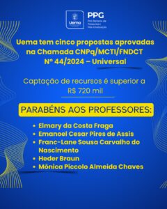O Pró-reitor de Pesquisa e Pós-Graduação da Uema, Marcelo Cheche, destacou a importância do resultado para a instituição. “Essas aprovações demonstram a maturidade e a força da pesquisa realizada na Uema. Nossos pesquisadores têm produzido ciência de alto nível, com impacto real para o Maranhão e para o Brasil. A Chamada Universal é altamente competitiva, e ver cinco projetos contemplados reforça o compromisso da Uema com a excelência acadêmica e com o fortalecimento da inovação científica”, afirmou.