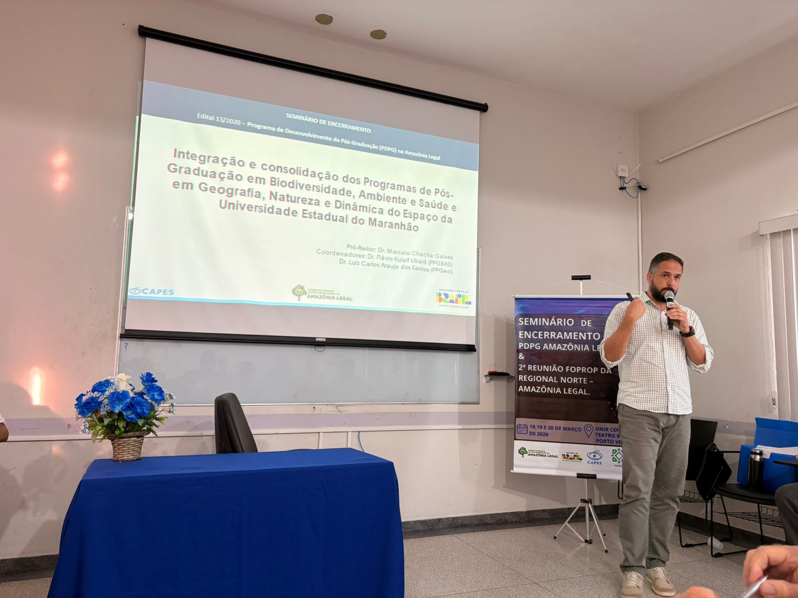 O Pró-reitor de Pesquisa e Pós-Graduação da Universidade Estadual do Maranhão (Uema), Marcelo Cheche, participou do Seminário de Encerramento PDPG Amazônia Legal e da 2ª Reunião do FOPROP da Regional Norte – Amazônia Legal, eventos que reuniram gestores e pesquisadores para avaliação de iniciativas estratégicas voltadas ao fortalecimento da pós-graduação e do desenvolvimento sustentável na região.