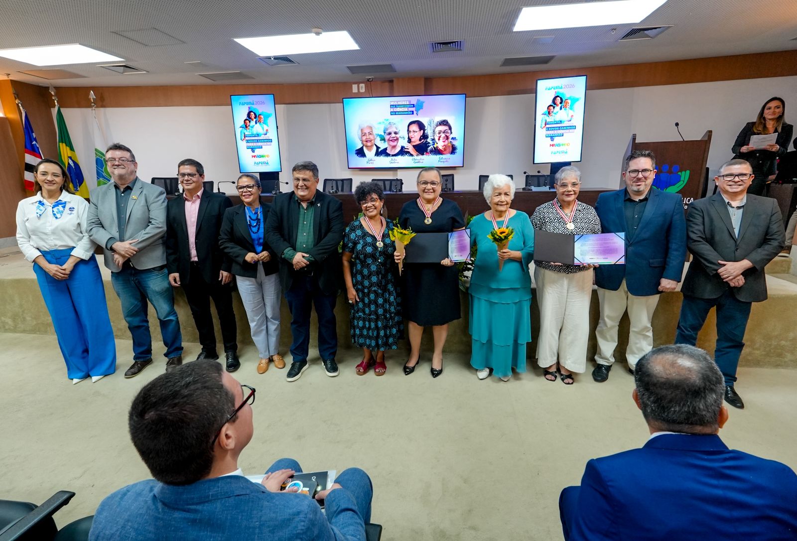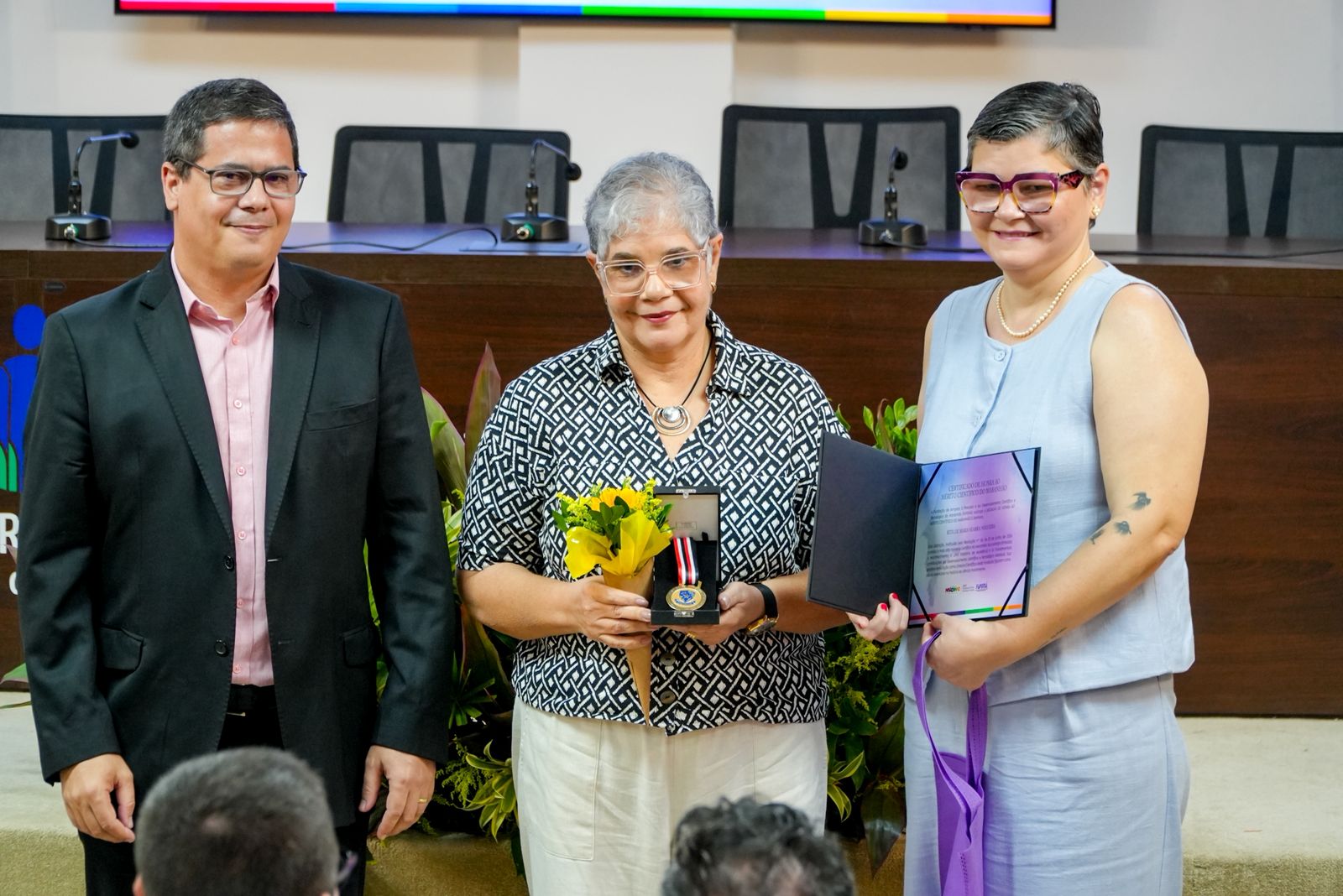 A agenda incluiu ainda a entrega da Medalha de Honra ao Mérito Científico do Maranhão, homenageando personalidades que contribuíram significativamente para o avanço da ciência no estado. No mês dedicado às mulheres, a Fapema também prestou homenagem às ex-diretoras científicas Silvane Magali, Cláudia Coelho, Célia Pires e Rita Seabra, reconhecendo suas trajetórias e atuação institucional.